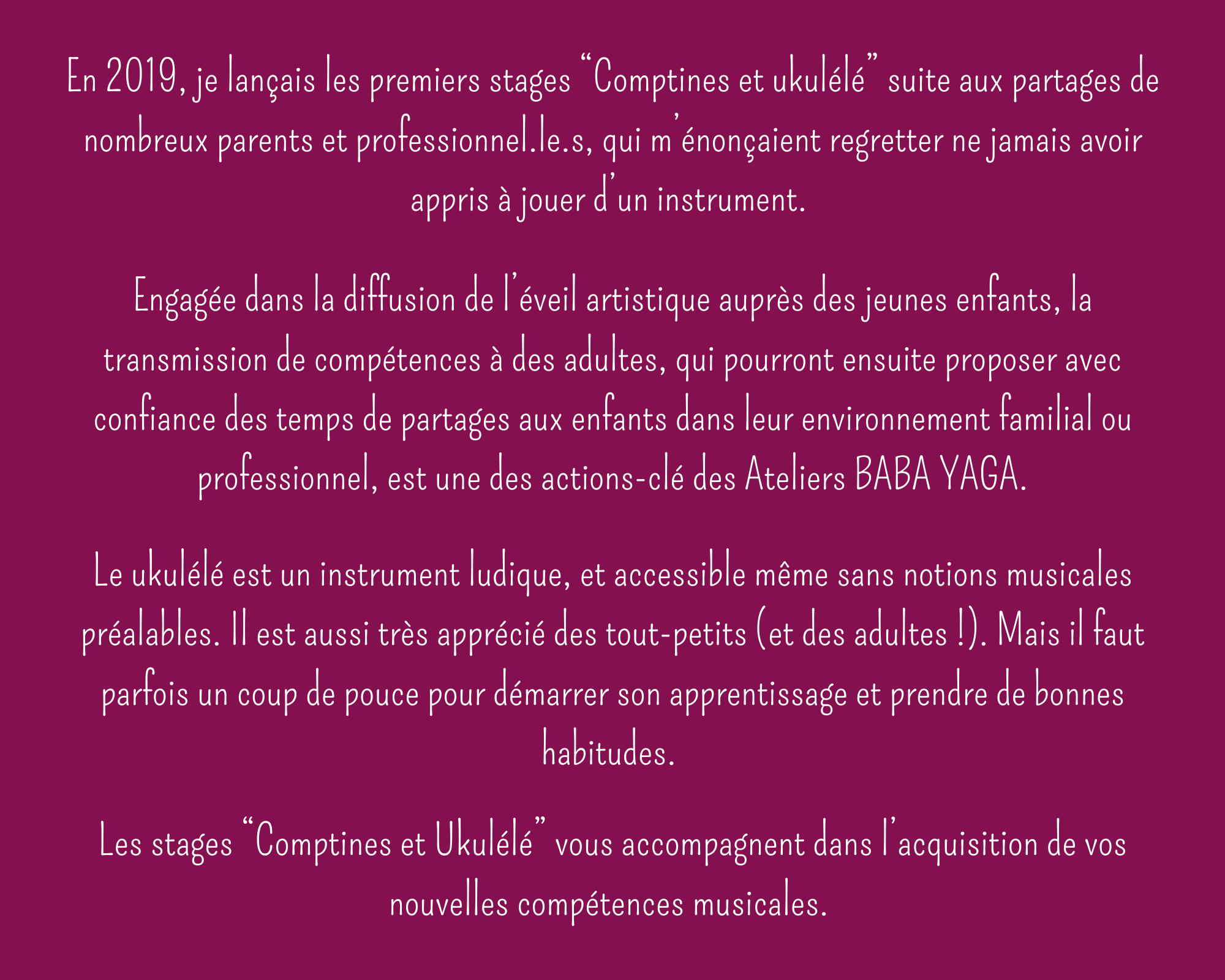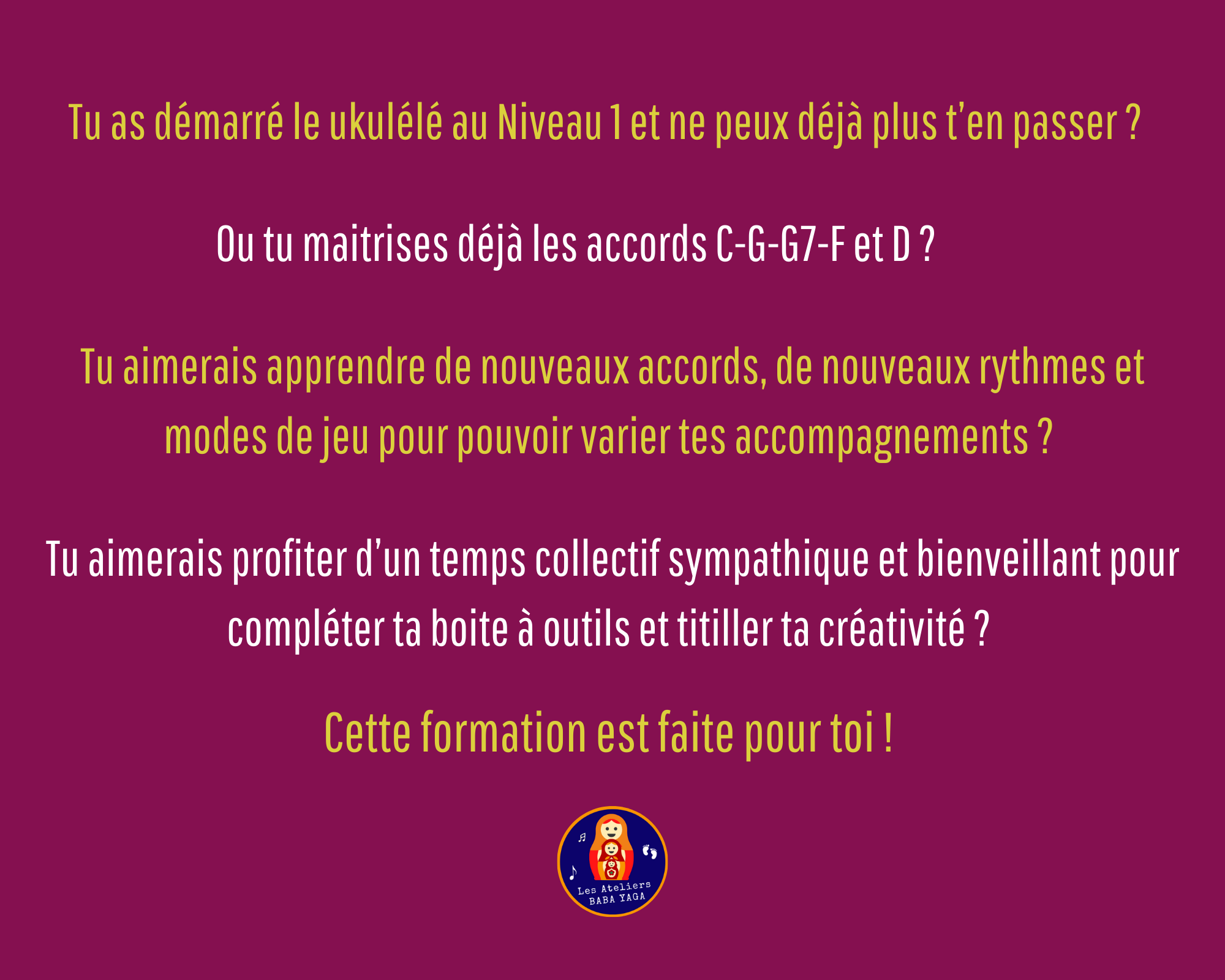 Pré-requis : avoir effectué le stage « Comptines & Ukulélé » Niveau 1.