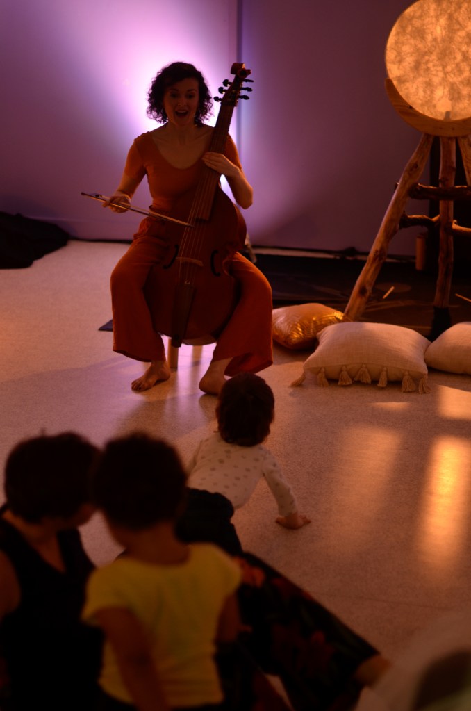 Musicienne pour le très jeune public et spécialisée dans l’accompagnement du lien parent-bébé.