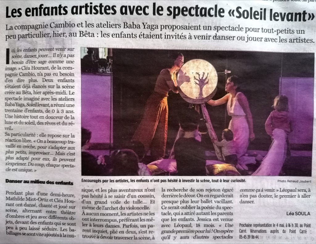 « Très beau spectacle où les enfants sont à la fois spectateurs et artistes. »