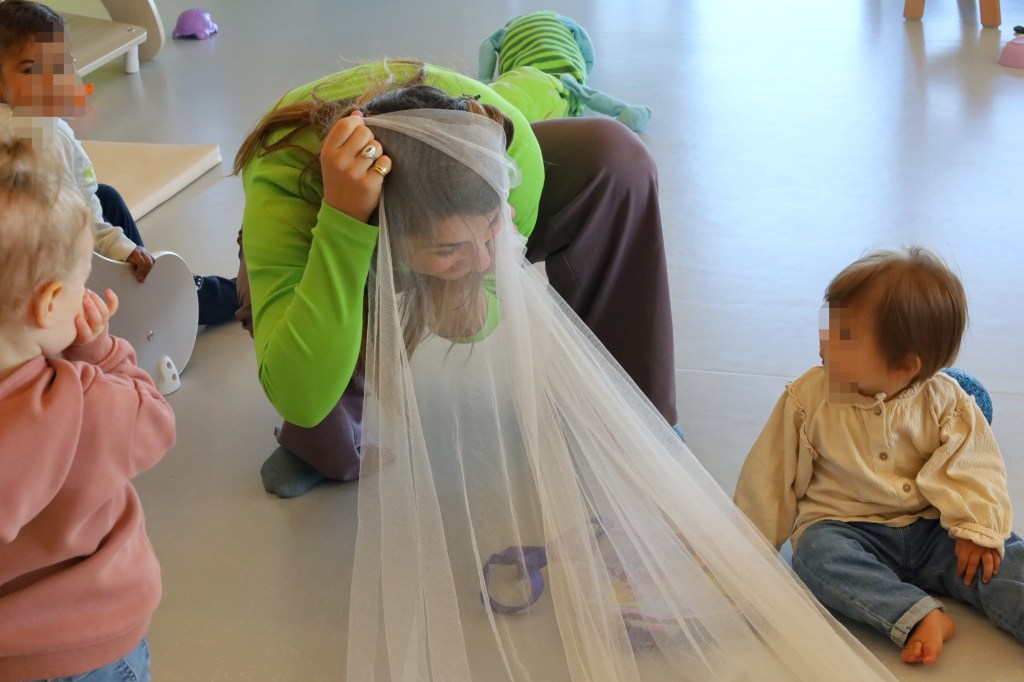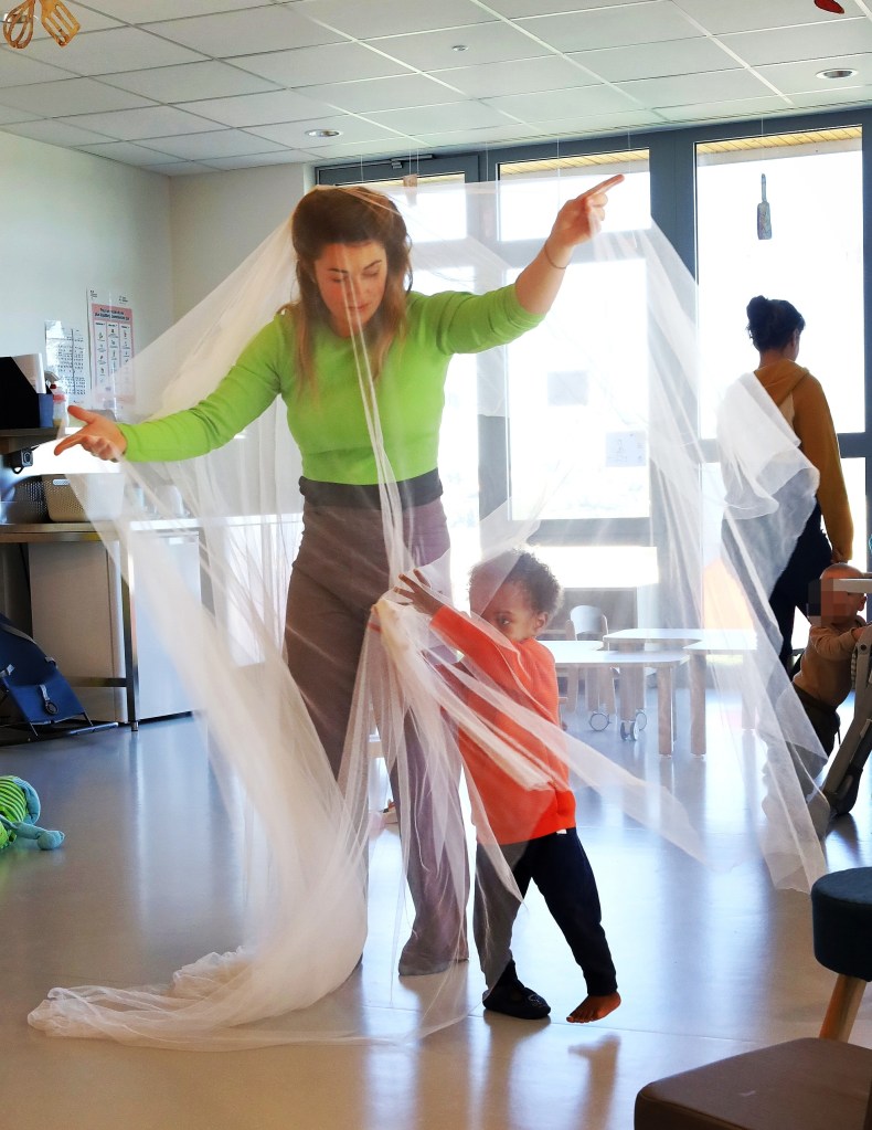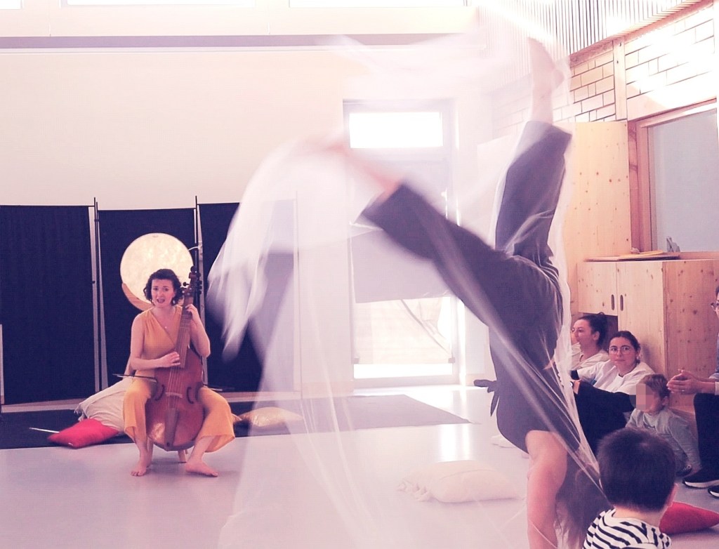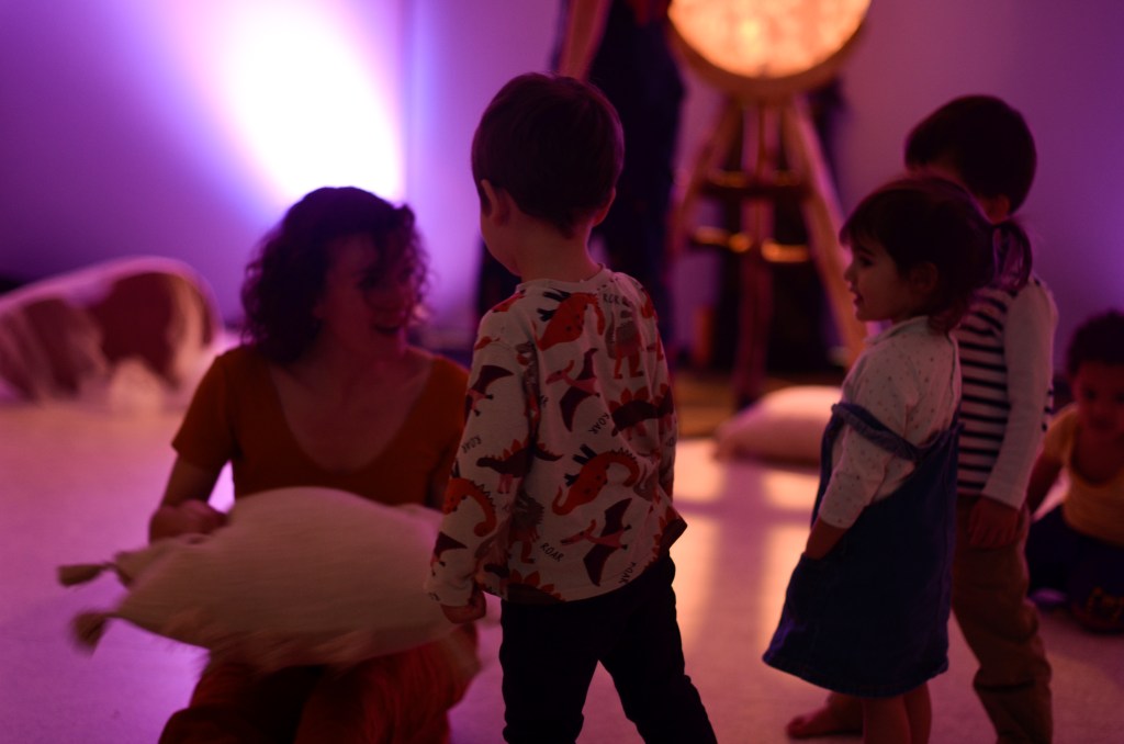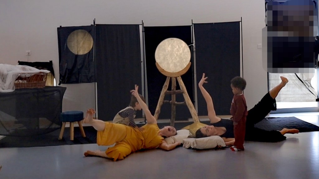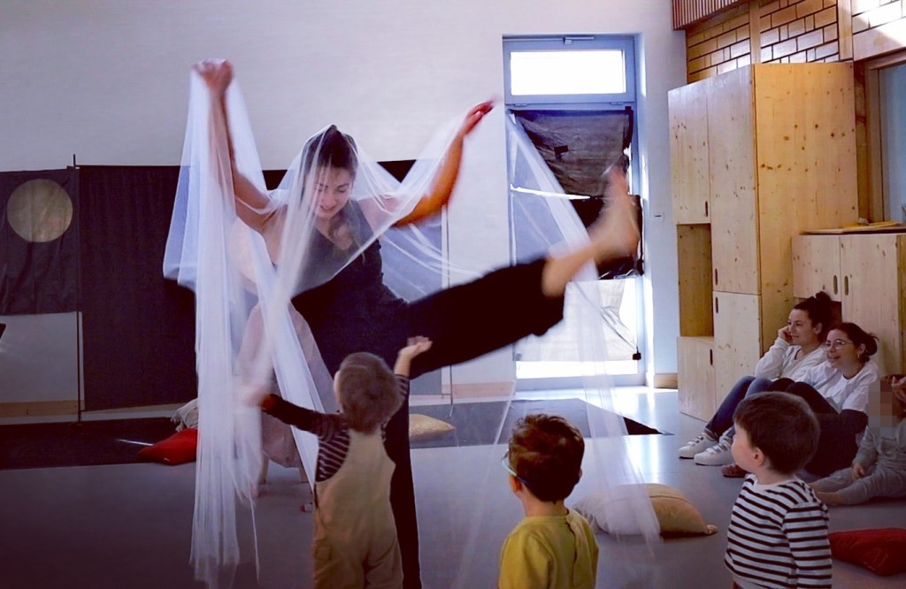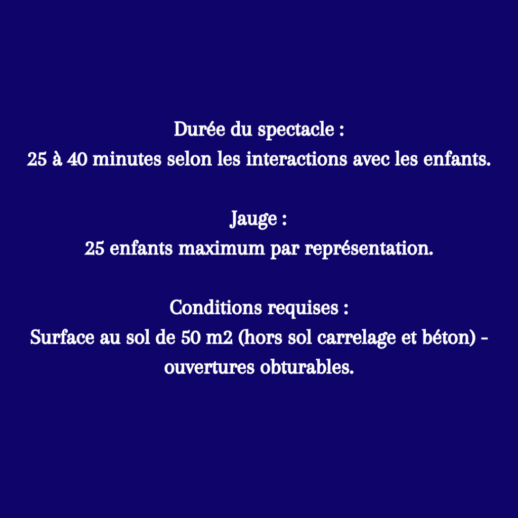 Nota Bene : Afin de permettre aux plus petits d’explorer librement et en toute sécurité, l’espace scénique central est accessible uniquement aux enfants jusqu’à 3 ans (inclus). Les enfants de 4 ans et plus sont invités à vivre le spectacle aux côtés des adultes, en tant que spectateurs. Nous serons heureuses de les rencontrer et d’échanger avec eux à l’issue de la représentation.