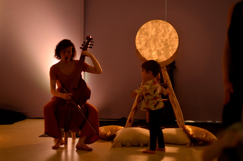 « Soleil Levant » est un spectacle alliant musique, danse et lumières, à destination du très jeune public de 3 mois à 3 ans, et de leurs accompagnateurs.rices.